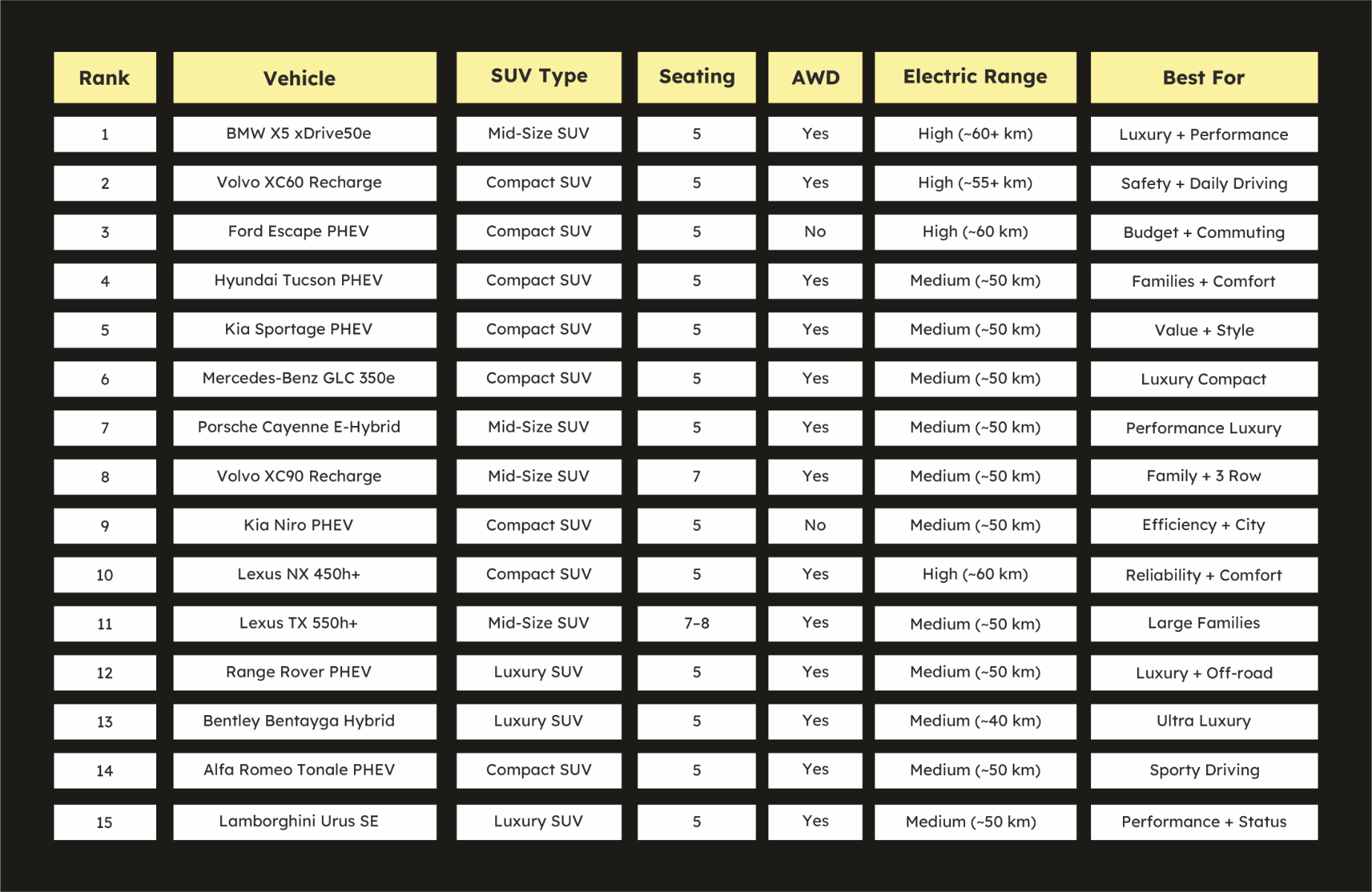 What Are the Best Plug-in Hybrid SUVs in Canada for 2026?